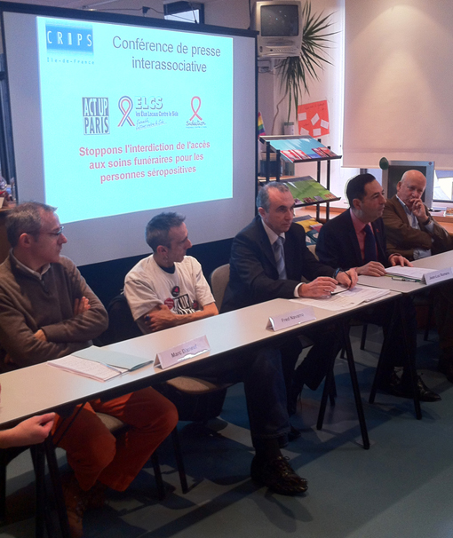 - Fred Navarro, président d’Act Up-Paris, qui a témoigné de ce qu’il a vécu à la mort de son compagnon. – *Jean Claude SIMON, secrétaire général de la FFPF (Fédération Française des Pompes Funèbres) a exposé le point de vue de sa profession.