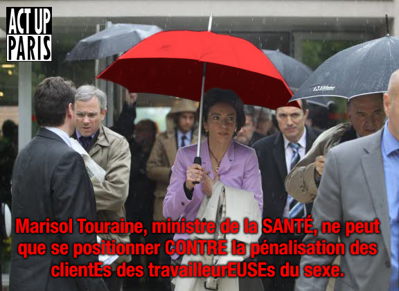 http://www.planning-familial.org/articles/le-planning-et-la-prostitution-00389]], et la majorité des scientifiques impliquéEs dans la lutte contre le VIH, Marisol Touraine, en tant que Ministre de la Santé, va de toute évidence se positionner contre la pénalisation des clientEs des travailleurEUSEs du sexe. Cela marque un tournant décisif dans le débat : chaque parlementaire devant assumer ses responsabilités, aucunE d’entre eux/elles ne pourra prétendre ignorer la dangerosité de la mesure sur laquelle ils et elles seront amenéEs à se prononcer, Act Up-Paris exige, pour des questions de santé publique, l’abandon de tout projet de pénalisation des clientEs des travailleurSEs du sexe, et la prise en compte des multiples rapports et expertises scientifiques sur le sujet[[http://www.cns.sante.fr/spip.php?article424