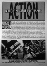 Aujourd’hui, Act Up-Paris a 3 ans. Il y a 3 ans, notre idée était de rassembler des séropositifs et des malades, afin qu’ils puissent, ensemble, faire entendre leur voix. Pendant 3 ans, nous avons exprimé une colère grandissante, parce que nous ne voulions plus subir passivement les choix de quelques médecins, attendre sans broncher que les médias veuillent bien parler du sida, constater sans riposter l’inaction des politiques en matière de prévention. De manifestation en manifestation, de zap en zap, nous avons donné à la lutte contre le sida une visibilité permanente.