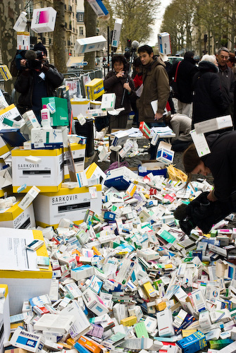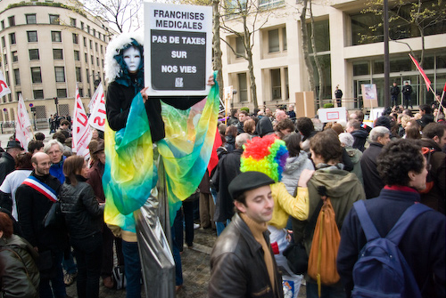 Photos du rassemblement devant le ministère de la Santé (organisé par le collectif National Contre les Franchise)s, du samedi 12 avril 2008, contre les franchises.
