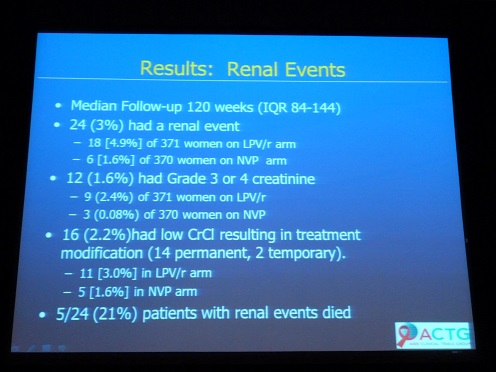 Les problèmes rénaux et le tenofovir Plusieurs sessions et posters ont abordé la question des problèmes rénaux en lien direct ou indirect avec le tenofovir. Globalement, les scientifiques se veulent rassurants sur cette question, mais cela pose comme toujours le problème du seuil à partir duquel on considère comme « acceptable » un effet indésirable. Ainsi, dans un poster réalisé par des scientifiques britanniques[[Sophie Jose et al., « Reversibility of Tenofovir-associated Decline in Kidney Function », Poster n°813, CROI 2013, Atlanta]], on peut lire les résultats d’une étude de cohorte réalisée sur 2610 patients ayant arrêté leur traitement au tenofovir suite à des problèmes rénaux importants, et notamment à une chute de leur taux de filtration glomérulaire. Pour la plupart des patients suivis, et pour lesquels on avait suffisamment de données analysables (soit 696 patients), le taux de filtration est revenu à la normale ou tout au moins à un niveau acceptable au bout de quelques mois. Pour 9,2 % d’entre-eux en revanche, la baisse du taux de filtration semblait irréversible. En analysant plus finement les résultats, il semblerait que la durée de l’exposition au tenofovir chez ces patients soit un facteur important de baisse irréversible du taux de filtration glomérulaire. Sur cette question, Act Up-Paris avait publié un dossier « Rein ne va plus » en 2008. Sur le même sujet, Mina Hosseinipour présentait en session orale des données intéressantes concernant les femmes (pour une fois, une étude ayant été consacrée exclusivement aux femmes) traitées soit avec une association de tenofovir/emtricitabine/lopinavir/ritonavir, soit avec l’association tenofovir/emtricitabine/nevirapine. L’étude, menée à partir des résultats de l’essai OCTANE réalisé dans plusieurs pays d’Afrique, a mis en évidence des problèmes rénaux chez 3 % des participantes. 35_Hosseinipour.jpg Cette faible prévalence des problèmes rénaux chez les femmes est plutôt rassurante, en regard des problèmes mentionnés plus haut avec le tenofovir, d’autant que les auteurs semblent avoir identifié l’une des causes principales de ces effets indésirables : la combinaison tenofovir/lopinavir, à propos de laquelle ils recommandent un suivi rénal plus important afin de pouvoir interrompre le traitement à temps en cas de problème, en plus du suivi d’ores-et-déjà recommandé pour les patients traités au tenofovir. Iprex, marque déposée Il est partout, comme si, dès que l’on prononçait le mot PrEP, il était là, près à bondir : Bob Grant, le Steve Jobs des PrEPs… Bob_Grant_Iprex.jpg Initiateur d’Iprex, dont il a fait une sorte de marque de fabrique (la « Iprex Team », ou « Global Iprex »), ou plutôt une machine de guerre pour implémenter les PrEPs, Grant aime citer un chiffre – un seul -, celui de « 99 % » d’efficacité des PrEPs, chiffre totalement idéologique puisque correspondant, dans l’essai de PrEP Iprex, au résultat d’efficacité obtenu en isolant la poignée de patients totalement observants… Mais il est d’autres données qu’il omet souvent de citer, y compris des données issues de « son » étude, des raffinements d’Iprex. Par exemple, un poster présenté le mercredi faisait état des résultats d’Iprex chez les jeunes participants (voir photo plus bas).Les 18-24 ans représentaient très exactement la moitié des participants d’Iprex (soit 1254 personnes). Rappelons au passage que l’essai Iprex visait à tester la stratégie de PrEP à travers une prise quotidienne de truvada® en prévention chez des hommes ayant des relations sexuelles avec des hommes. L’essai était randomisé, avec un bras placebo. Le profil des jeunes inclus dans l’essai était vraisemblablement à haut risque d’infection par le VIH, puisque 57 % d’entre-eux déclaraient des pénétrations anales non-protégées dans les derniers mois, et 44 % du sexe tarifé. Au total, 77 d’entre-eux ont été contaminés dans l’essai, tant dans le bras placebo que dans le bras truvada®. Lorsque l’on regarde les chiffres de plus près, on se rend compte qu’il existe dans ces résultats peu de différence (au vu des effectifs) entre le bras placebo (incidence de 4,24 %) et le bras truvada® (3,06 % d’incidence). Ainsi, le résultat d’efficacité de la PrEP pour les 18-24 ans dans l’essai Iprex s’élève à 28 %, contre 56 % chez les plus âgés… Rappelons que le résultat d’efficacité moyen dans Iprex se situait à 44 %. On nous opposera que ces jeunes ont été malgré tout « protégés » par les PrEPs, puisqu’ils ont connu une incidence plus importante dans le bras placebo. Cependant, 28 % d’efficacité, c’est peu, très peu, et peut-être moins que ce que l’on pourrait espérer d’une intervention de prévention ciblée auprès des jeunes gays, notamment à travers la promotion de politiques publiques pour informer ces personnes sur le cocktail explosif qu’illustre le profil des jeunes d’Iprex, avec une consommation d’alcool importante, du sexe non-protégé et du travail du sexe (notamment en évitant la criminalisation de ce dernier, renforcée chez les gays par d’autres formes de discriminations). Il est fort à parier que le résultat d’efficacité de politiques publiques luttant contre les discriminations et mettant à disposition de touTEs les outils de prévention essentiels se révélerait supérieur aux 28 % d’Iprex… Act Up-Paris et la CROI, réfléchissons ensemble à la recherche, aux traitements et à la prévention Après la CROI, le travail n’est pas terminé, il faut poursuivre la vigilance, faire entendre la voix des malades auprès des chercheur-e-s, lutter pour que les femmes soient représentées dans les essais, que les recherches ne soient pas instrumentalisées en vue de promouvoir une vision idéologique de la sexualité. Tout c