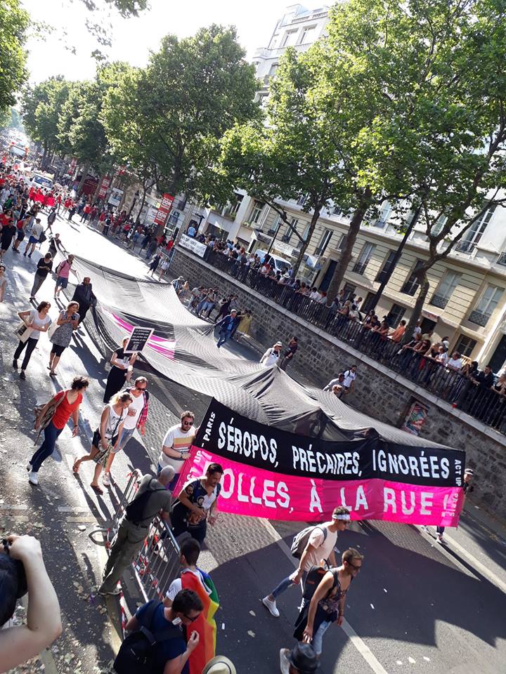 La première marche des fiertés du nouveau quinquennat s’inscrit dans un contexte où « l’état de grâce » Macron est des plus inquiétants : le gouvernement accélère encore sur l’autoroute sécuritaire du déversement des mesures de l’état d’urgence dans le droit commun, ce qui frappe directement, tout particulièrement, les migrantEs et les putes. De plus, les réformes par ordonnances, prises pour aller plus loin encore que la loi El Khomri, menacent les vies de beaucoup d’entre nous, en nous pénalisant dans l’accès et le maintien dans l’emploi, en nous incitant à taire qui nous sommes, en nous conduisant à continuer à subir des discriminations ou du harcèlement pour garder un emploi ou un logement.