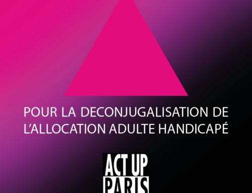 Dans ce contexte, Act Up-Paris met en avant les difficultés sociales que rencontrent pédés, gouines, biEs, trans, inter, et tout particulièrement les séropos, que les réformes à venir vont exacerber. C’est une étape pour porter dans nos luttes l’urgence de ne pas se laisser enfermer dans l’espace « sociétal », dans lequel trop tentent de nous réduire, et donc l’urgence de donner à lire nos luttes en tant que politiques et sociales, dans lesquelles des dynamiques d’alliance et de coalition ont – encore aujourd’hui – toute leur place.