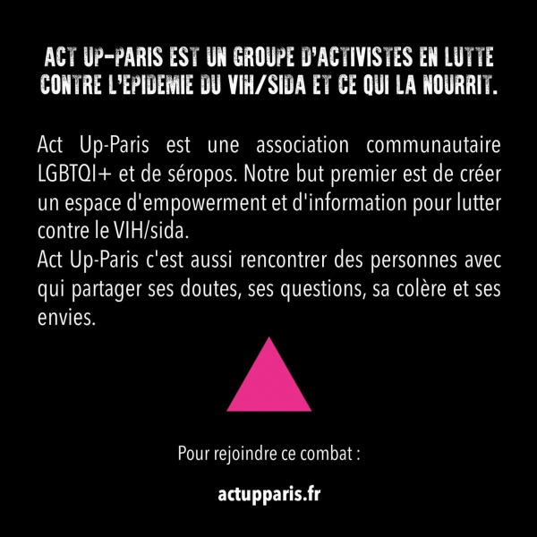 Act Up-Paris est une association communautaire LGBTI+ et de séropos.