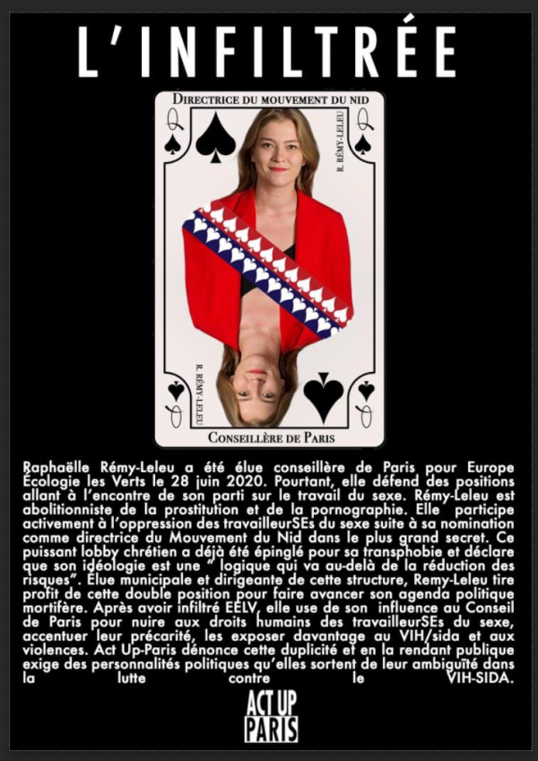 Comment Raphaëlle Rémy-Leleu jongle-t-elle entre les valeurs de EELV Paris au Conseil De Paris concernant la lutte contre le VIH/sida, contre la transphobie ou contre la répression des TDS alors qu’elle est devenue DIRECTRICE du Mouvement du Nid ?