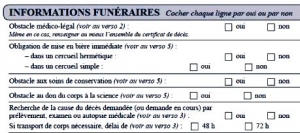 En haut à droite du certificat un cadre est réservé aux opérations autorisées ou non sur le cadavre.