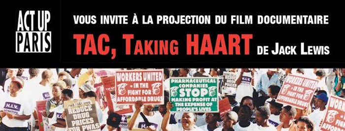 A l'occasion de la Journée mondiale de lutte contre le sida, Act Up-Paris organise une projection gratuite de TAC, taking HAART, un documentaire de Jack Lewis sur le combat pour l'accès aux médicaments antirétroviraux en Afrique du Sud.