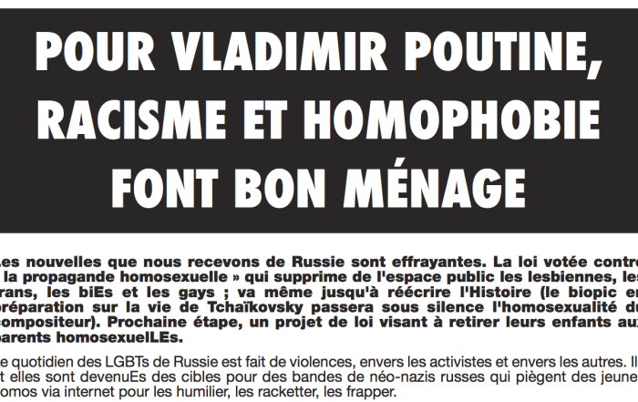 Pour Poutine, racisme et homophobie font bon ménage