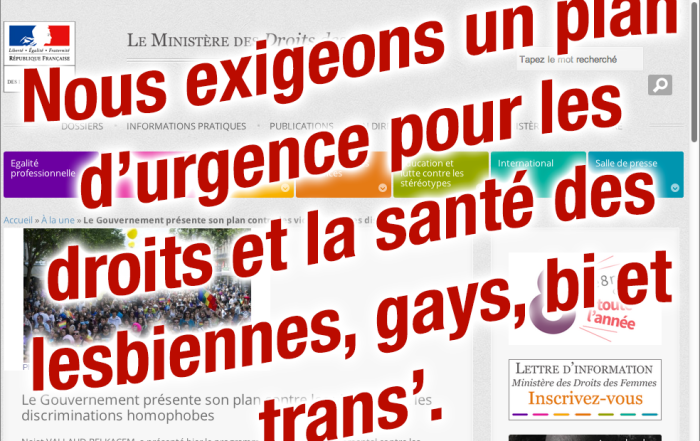 Act Up-Paris refuse d'aller à la cérémonie mondaine organisée par Najat Vallaud-Belkacem, supposée faire le point sur le plan gouvernemental de lutte contre les violences envers les lebsiennes, gais, bi et trans.