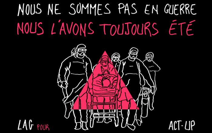 Act Up-Paris est une association de lutte contre le VIH-Sida issue de la communauté homosexuelle. Elle rassemble des séropositifVEs, des militantEs concernéEs par la maladie, des hommes, des femmes, lesbiennes, gays, biEs, trans, hétéros, pour qui le sida n’est pas une fatalité. Nous pensons que des réponses politiques doivent être apportées à cette épidémie, vaincre le sida n’est pas du seul ressort de la médecine.