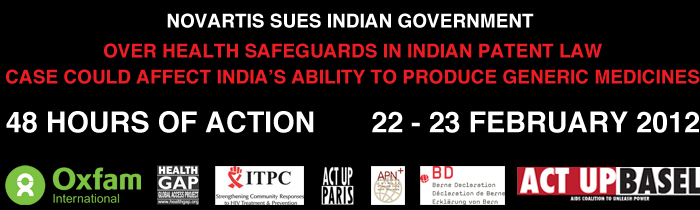 Swiss MultinationalPharmacuetical company Novartis is continuing its tradition of suing developing country governments for their pro-health patent laws. In 1999, Novartis along with other pharmaceutical companies sued the South African government over pro-health amendments in their patent law. Since 2006, they have been suing the Indian government over the health safeguards (Section 3d) in its patentlaw. India supplies generic medicines across the developing world and health and PLHIV groups in India have been using Section 3(d) of the Indian law toensure that key medicines stay off-patent. Novartis did not get a patent inIndia on a cancer medicine and wants this law (Section 3d) weakened. BUT THIS WILL IMPACT ALL OTHER GENERIC MEDICINES AS WELL.