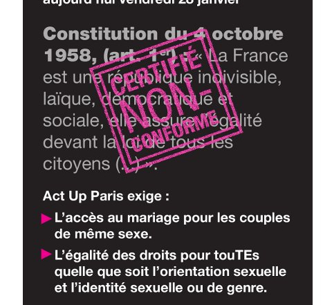 Act Up-Paris est une association de lutte contre le VIH-Sida issue de la communauté homosexuelle. Elle rassemble des séropositifVEs, des militantEs concernéEs par la maladie, des hommes, des femmes, lesbiennes, gays, biEs, trans, hétéros, pour qui le sida n’est pas une fatalité. Nous pensons que des réponses politiques doivent être apportées à cette épidémie, vaincre le sida n’est pas du seul ressort de la médecine.