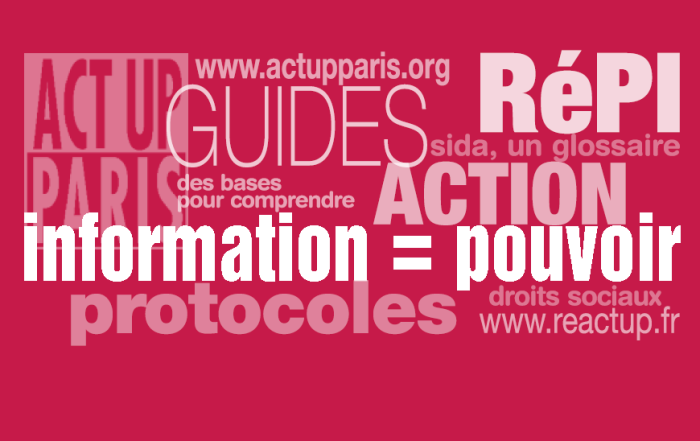 Connaître les différents aspects de la maladie, thérapeutique, sociaux, militants, est essentiel pour lutter contre le sida. C'est pourquoi Act Up-Paris développe depuis sa création différents outils pour maîtriser et diffuser de l'information autour du VIH : publications, guides, réunions publiques et site web. Présentation en images de ce dispositif.