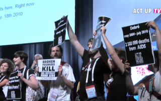 Lors de la 18e conférence mondiale sur le sida[[Conférence qui s’est tenue à Vienne du 18 au 23 juillet 2010.]], les activistes de différents pays se sont réunis à plusieurs reprises pour manifester sur des questions de propriété intellectuelle face à l’Europe, sur des questions liées à la place des femmes dans l’épidémie, et sur l’urgence d’obtenir de nouveaux traitements pour contrer les co-infections VIH/VHC.