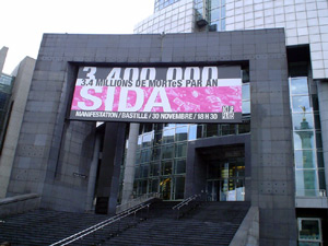 Aujourd'hui, lors du discours de Jacques Chirac, donné à l'occasion de la journée mondiale de lutte contre le sida, à l'inauguration de "l'Artère", 7 militantEs d'Act Up-Paris ont interpellé le Président de la République sur la participation de la France au financement mondial de la lutte contre le sida. Alors que Jacques Chirac tenait à "redire la détermination de la France à promouvoir l'accès universel aux traitements", les militantEs brandissait des pancartes "la France compte ses sous, l'Afrique compte ses mort-e-s", pour dénoncer le mépris du chef de l'Etat.