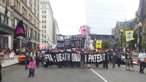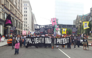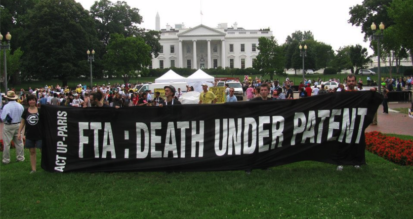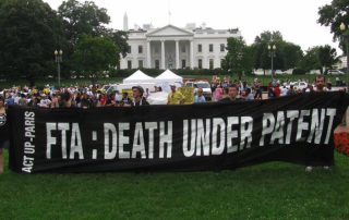 Des accords bilatéraux négociées par les pays riches (Etats-Unis et Europe en tête) menacent la production et la circulation des génériques en imposant aux pays un respect des brevets sur les médicaments encore plus strict que ne le prévoit le droit international. Act Up-Paris surveille ces accords et travaille avec ses partenaires internationaux à en retirer les clauses qui entravent l’accès aux traitements.