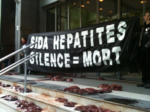 Ce matin de la journée mondiale Hépatites, une vingtaine de militantEs d'Act Up-Paris ont déposé 260 foies sur le perron du Ministère de la Santé pour symboliser les 2 600 morts par an dus à l'hépatite C en France. Act Up-Paris dénonce les effets d'annonce de Roselyne Bachelot-Narquin qui masquent le manque de volonté politique du gouvernement de venir à bout de cette épidémie.