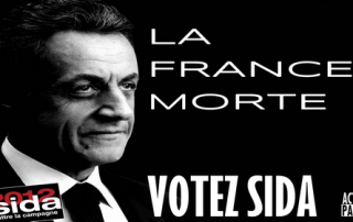 Aujourd'hui Act Up-Paris présentait sa version de la candidature de Nicolas Sarkozy. Nous entendons rappeler les promesses non tenues de l'UMP en matière de lutte contre le sida, notamment la levée de l'interdiction des soins funéraires. Le président de notre association, Frédéric Navarro, confronté directement aux conséquences de cette discrimination, s'est rendu devant le siège de campagne du président, pour y lire une déclaration. A celles et ceux qui n'ont pas le temps de lire l'indigeste lettre du Président de la République, nous le rappelons : Nicolas Sarkozy entend persévérer dans la haine des malades, de leur vivant et même après la mort.