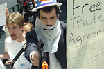 Des accords bilatéraux (Free Trade Agreement) signés entre les États-Unis et des pays en développement ont pour conséquence de bloquer l'accès aux médicaments génériques pour les pays «partenaires». Les activistes ont manifesté devant le stand des Etats-Unis avec les slogans «US stop the FTA», «FTA kill poeple with AIDS» et «We need generic drugs now!». Parmi eux, un activiste, déguisé en Oncle Sam arme à la main, dénonçait l'attitude du gouvernement américain qui obligent la Thaïlande ou la Malaisie à se plier à leurs règles commerciales au détriment de l'intérêt des malades.