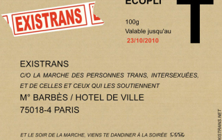 Pour sa 15ème marche qui aura lieu le samedi 1er octobre 2011 à 14h au départ du métro Bastille à Paris, l’Existrans tient à souligner que plus d’un an après l’effet d’annonce de l’ancienne Ministre de la Santé, Roseline Bachelot, rien n’a été mis en œuvre concrètement.