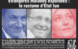 En un an, Hollande a expulsé vers des pays où les soins ne sont pas accessibles plus de ressortissantEs étrangèrEs atteintEs du sida et/ou d'une hépatite que les gouvernements précédents en 15 ans. Cela s'appelle une condamnation à mort sur des critères racistes. Sarkozy a fragilisé le droit au séjour pour soins. Hollande le piétine avec [...]