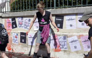 Hier après-midi, une petite dizaine de militantEs d'Act Up-Paris a zappé la fondation Jérôme-Lejeune, en déversant du faux-sang devant la façade de son siège. La fondation Jérôme-Lejeune est une association homophobe et réactionnaire, qui soutient explicitement "La Manif Pour Tous". Sa responsable de communication est Ludovine de la Rochère, présidente de "La Manif Pour Tous".