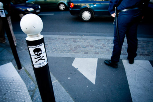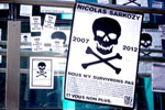 Des militantEs d'Act Up-Paris ont manifesté ce soir devant la Mutualité [[Rencontre UMP Paris avec Nicolas Sarkozy et Simone Veil sur « les femmes et l'égalité des chances »]], pour dénoncer les dangers que fait peser le candidat de l'UMP sur la santé. Ainsi que le proclament les affiches collées depuis mardi dans la capitale : Nicolas Sarkozy 2007-2012 : nous n'y survivrons pas.