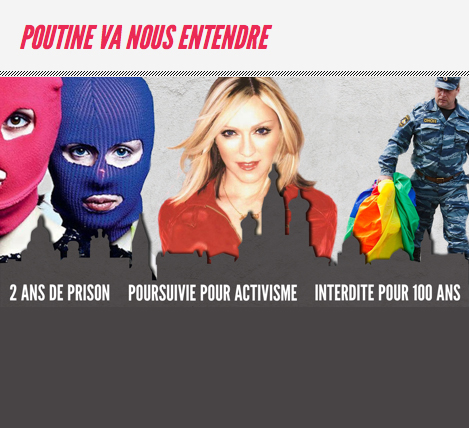Appel d'Act Up-Paris à la manifestation du 13 septembre 2013 à 18h, Esplanade des Droits de l'Homme, Trocadéro, Paris Les nouvelles que nous recevons de Russie sont effrayantes. La loi votée contre « la propagande homosexuelle », qui supprime de l'espace public les lesbiennes, les trans, les biEs et les gays, va même jusqu'à réécrire l'Histoire [...]