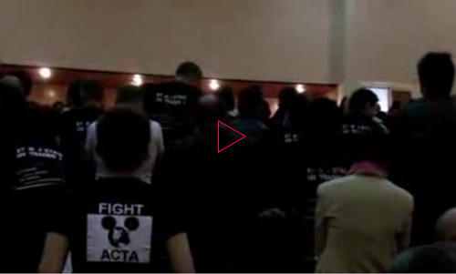 Casablanca, le 31 mars 2010 - Les militants d'Act Up-Paris, AIDES et Sidaction appellent les acteurs de la lutte contre le sida à tourner le dos au représentant de la France, l’ambassadeur sida Patrice Debré, lors de la lecture du discours de clôture de la France à la cinquième conférence francophone à Casablanca.