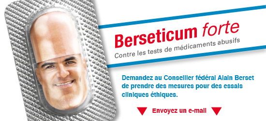Act Up-Paris signe et relaie la pétition de la Déclaration de Berne : demandez au conseiller fédéral Alain Berset de prendre des mesures pour des essais cliniques éthiques.