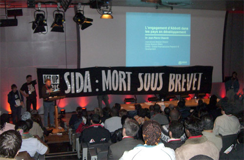 Tandis qu'Abbott vantait son «engagement dans les pays en voie de développement», Act Up-Paris a interrompu ce matin le symposium du laboratoire pour dénoncer le chantage qu'exerce ce dernier sur les malades en Thaïlande et appeler à son boycott.