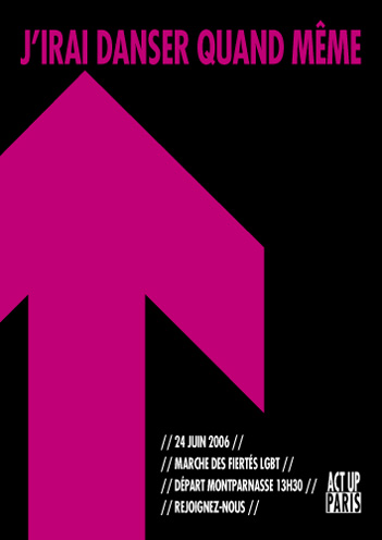 Ce samedi, Act Up-Paris défilera à la Marche des Fiertés Lesbienne, Gay, Bi et Trans' avec un "rainbow flag endeuillé" de 45 mètres de long et 7,5 mètres de large. Il s'agit d'une déclinaison bicolore du drapeau arc-en-ciel gay, qui reprend les deux couleurs traditionnelles d'Act Up-Paris. Un drapeau sur lequel le noir serait venu inonder toutes les autres couleurs à l'exception du rose. Le noir, pour symboliser les ravages de l'épidémie de sida dans la communauté gay depuis son apparition il y 25 ans. Le rose, couleur de la communauté gay, pour symboliser néanmoins l'espérance, la fierté, le combat, la fête. Ce qu'illustre le slogan que nous avons choisi pour cette manifestation : « sida : j'irai danser quand même ». Une fois de plus, nous rappellerons que le sida a décimé la communauté LGBT, qu'il la touche plus que jamais et qu'il tue encore aujourd'hui. Mais, cette année, nous alerterons particulièrement sur la précarisation des personnes séropositives et sur le manque de solidarité de notre communauté vis-à-vis des plus précaires.
