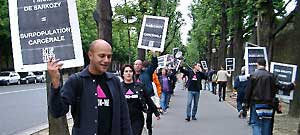 Hier, à 19 heures, trente militants d'Act Up-Paris ont manifesté devant la prison de la Santé pour dénoncer la politique menée par le gouvernement Raffarin, et notamment celle incarnée par Sarkozy : la répression de toutes les minorités.