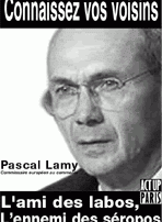 Ce matin, une vingtaine de militants d'Act Up-Paris ont réveillé Pascal Lamy aux cris de «Lamy des labos, l'ennemi des séropos», »Génériques empêchés, séropos assassinés» et «Lamy, tu bloques les génériques, tu assassines l'Afrique». En effet, Pascal Lamy, commissaire européen, qui s'est présenté comme le fer de lance du combat pour l'accès aux médicaments retourne finalement dans le giron de l'industrie pharmaceutique. En témoignent les propositions de la Commission Européenne dans le cadre des négociations aux conseils de TRIPS.