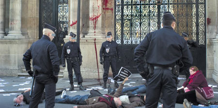Après avoir manifesté ce matin à l'ouverture du Colloque du 60ème anniversaire de la Sécurité Sociale, des militantEs d'Act Up-Paris ont interpellé Xavier Bertrand pendant son discours de clôture. Ils ont alors été violemment appréhendéEs par des membres du service de sécurité qui ont fait en sorte, en les prenant à la gorge, de les empêcher totalement de parler. Il faudra d'autres gestes, d'autres méthodes pour faire taire la voix des malades face à la politique de démantèlement de la Sécurité Sociale qui s'est encore accentuée avec l'annonce de la franchise de 18 euros. Act Up-Paris reconnaît à Xavier Bertrand, à défaut de pertinence et de transparence, une réelle constance : il poursuit sa politique de restriction de l'accès à l'assurance maladie et à l'Aide médicale de l'état et s'obstine à refuser toute concertation avec les malades.