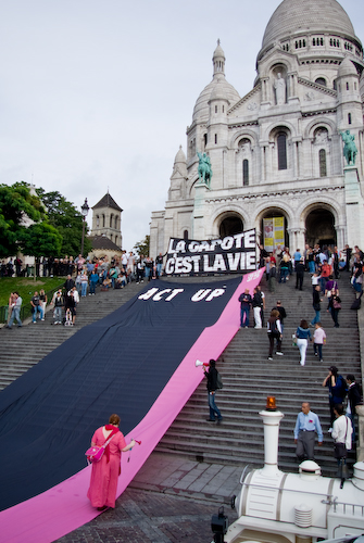 « La capote c’est la vie ». C’est le message qu’ont déployé le samedi 13 septembre 2008 les militantEs d’Act Up-Paris sur les marches du Sacré-Cœur, tandis que Benoît XVI prêchait sur l’esplanade des Invalides.